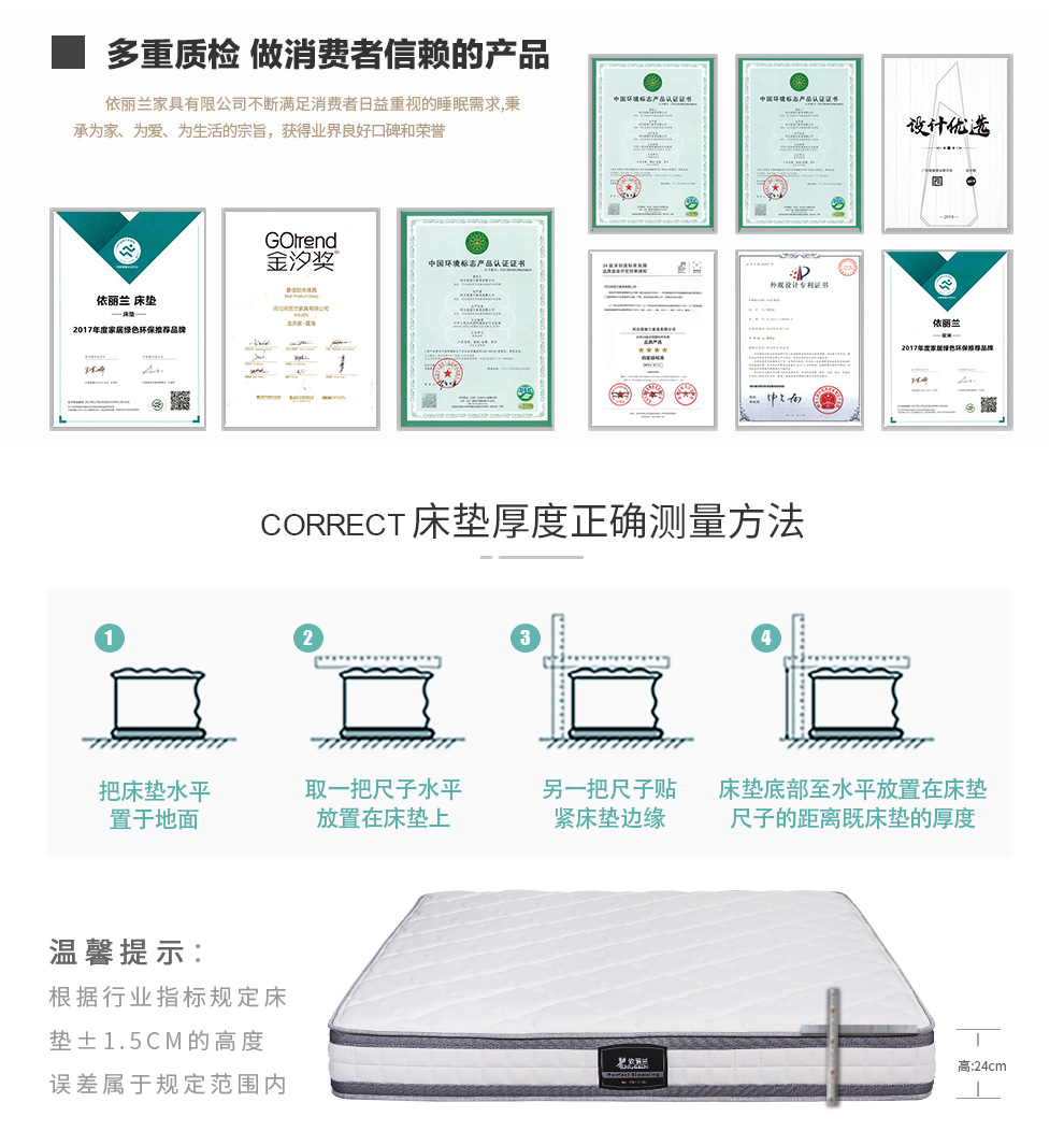 依麗蘭床墊 天然乳膠床墊 袋裝彈簧床墊 獨立靜音彈簧床墊 席夢思床墊 心意舒適 心意舒適 1800*2000*240